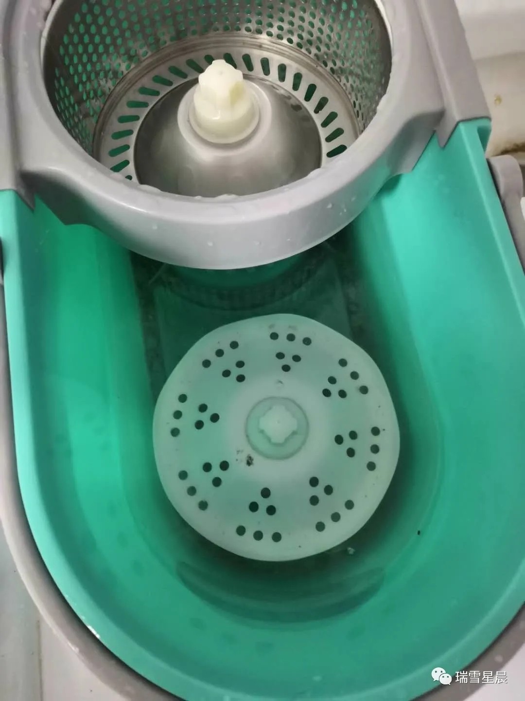又过了一会儿,一位师傅给送来了一个带甩干功能的拖把套装。