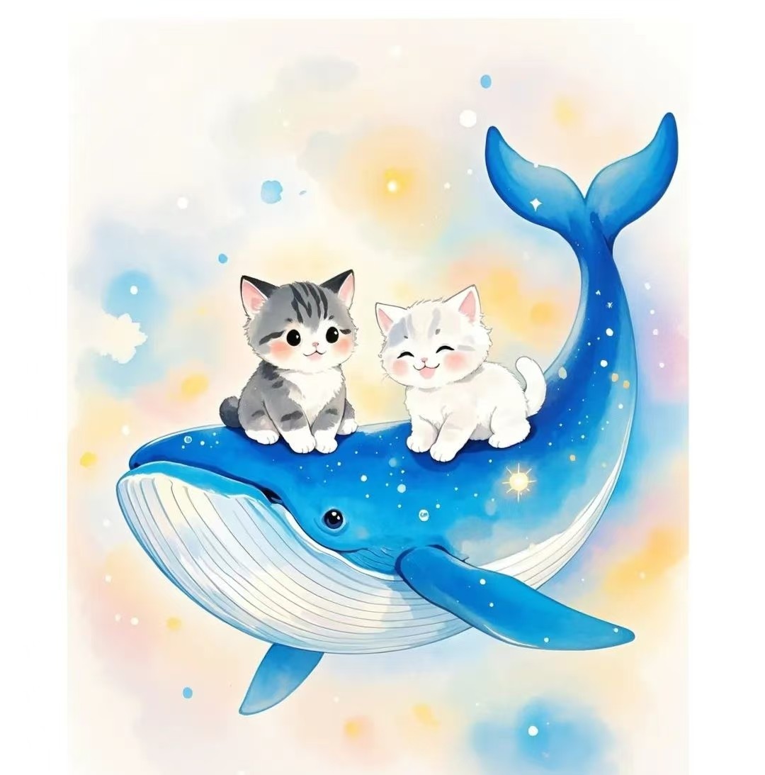 她梦到自己和其他兄弟一起坐在了一只巨大的鲸鱼背上,鲸鱼驮着他们缓缓地在天空游着。